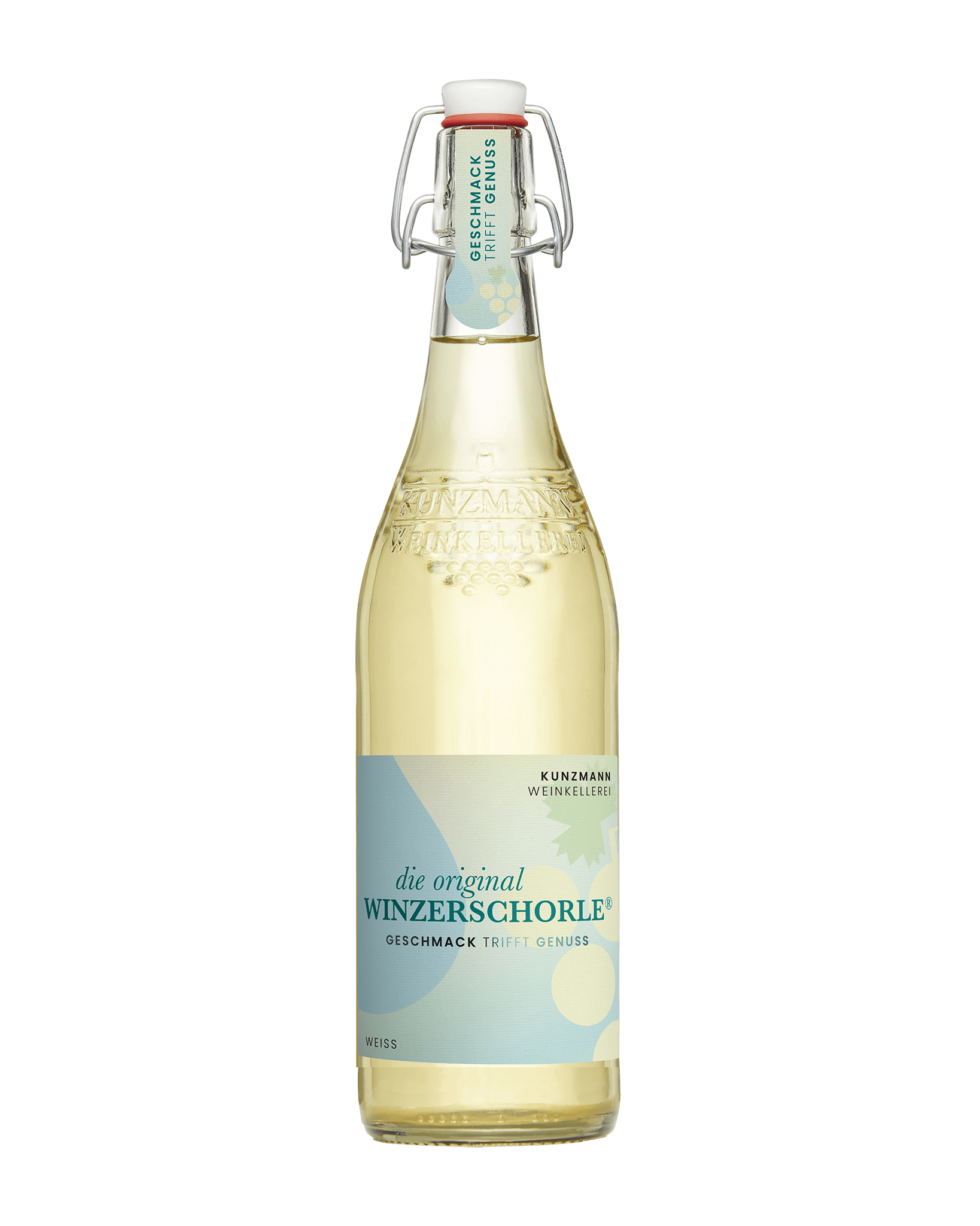 Feinherbe Winzerschorle aus Weißwein und Mineralwasser.
